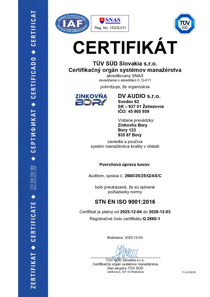, ktorá potvrdzuje vysoký štandard našich procesov